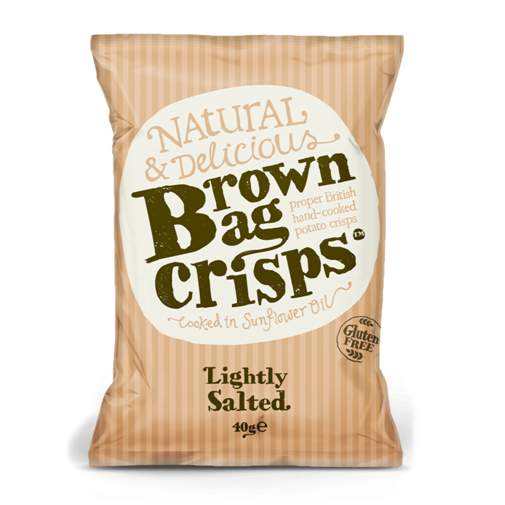 Enjoy the simple, natural crunch of Brown Bag Lightly Salted Crisps. Hand‑cooked in small batches from the finest British potatoes, lightly seasoned with sea salt for a perfectly balanced, crispy snack. Gluten-free and full of authentic flavour.