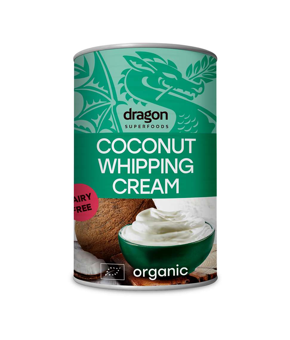 Dragon Superfoods Organic Coconut Whipping Cream is a dairy-free alternative to classic whipping cream, and has a coconut aroma and a slightly sweet taste.